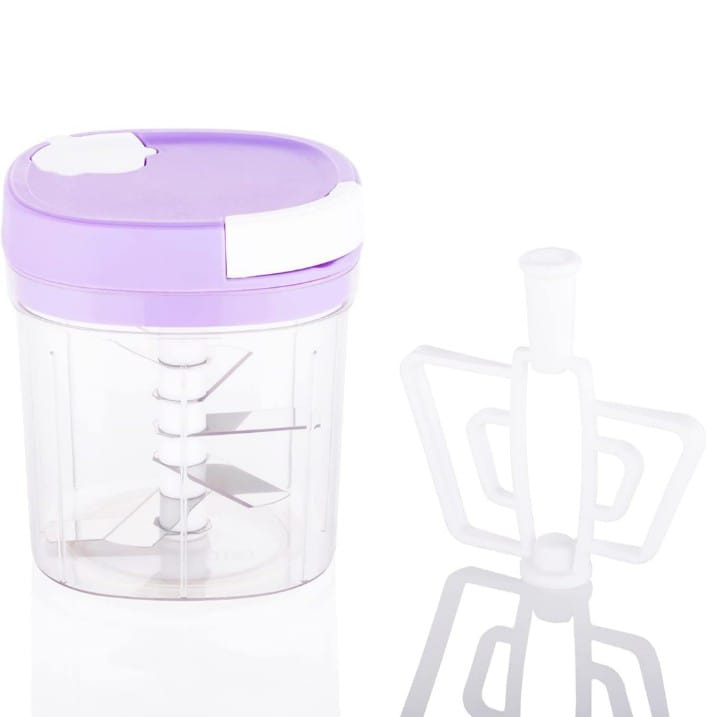 💜 Stylish 1100ml Quick Chopper – Lavender Edition 🍇🔪 Add a pop of color and convenience to your kitchen with this 1100ml quick chopper in a fresh lavender shade! 🌸 With razor-sharp stainless steel blades, it chops veggies, nuts, fruits, and more in seconds ⚡. Comes with a whisk attachment perfect for mixing batters or making dips 🥄. No electricity needed – just pull and prep! 🧅🧄